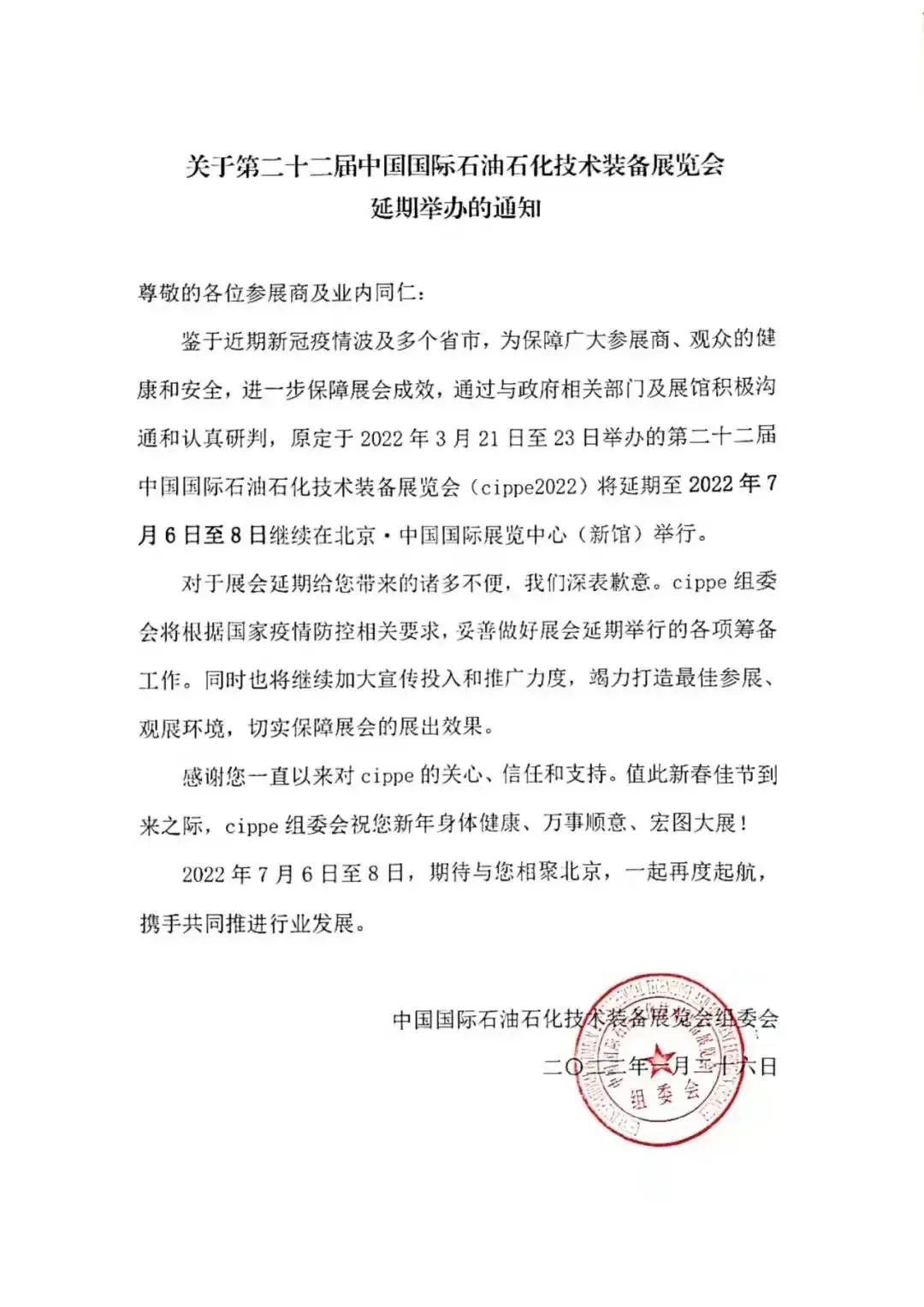 2022-02-08因展会延期给您造成的不便我们深表歉意,敬请谅解。感谢您一直以来的支持,我们将抓住延长的窗口期,将各项筹备工作做得更好、更充分,力争此次展会取得更大成功!祝大家身体健康,工作如意!新年快乐,阖家团圆!获取更多展会动态请关注HEIE北京国际氢能展官网和官方微信公众号,如有任何问题请与组委会联系,电话:010-5617699.........【详情】