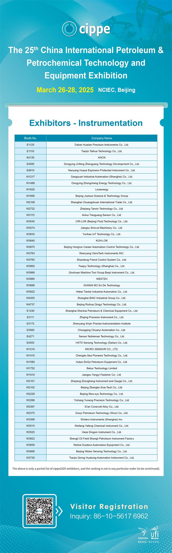 2024-02-02The 23rd China International Petroleum and Petrochemical Technology and Equipment Exhibition (cippe) was held in Beijing as scheduled. The organizing committee .........【more】