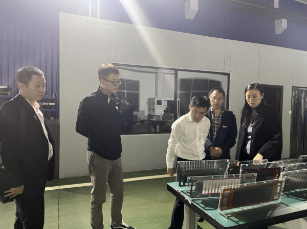 李海江博士、王宏伟秘书长、北京振威展览有限公司事业部副总经理陈魁等一行人等人参观了振邦氢能生产车间,并就氢燃料电池相关技术与振邦氢能副总经理赵阳进行深入交流与探讨。国内外对氢燃料电池的研发主要氛围金属双极板和石墨双极板。石墨电极氢燃料电池体积大、重量大、技术门槛较低,国内生产企业有上百家,竞争激烈。而振邦氢能确立了更加符合未来的趋势的金属双极板氢燃料电池研发方向。
