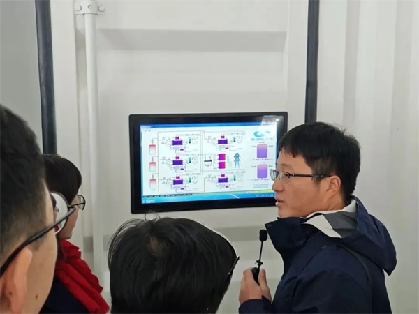参观团首先来到了,热电联供系统的产品线,氢储能热电联供系统是氢港新能源在氢储能领域的一项重要突破。它集成了氢能源的储能,发电和供热功能,提供了一种高效、环保、长时的绿色能源解决方案,实现了绿色能源的高效利用和多元化供应。
