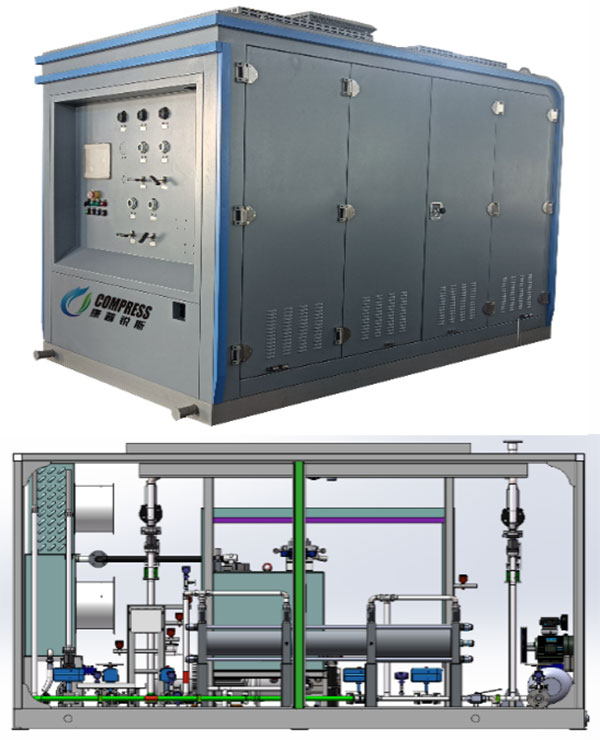 康普锐斯于2019年自主研发了90MPa&1000kg级加氢站用压缩机,获得合肥通用院检测认证,性能参数超过2019年国家重点专项要求。