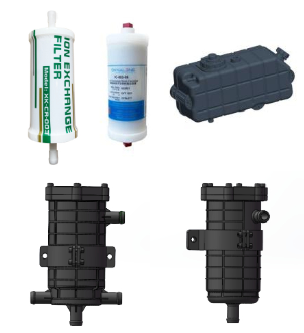含有耐高温混床高容量吸附树脂,其离子去除能力强、高容量、耐高温、混床结构,耐腐蚀等特性为系统提供长效安全的绝缘?;ぃ嘀纸油烦叽缪≡?,并可以接受定制,且有水箱集成方案;适用于电子冷却、电池系统冷却、低电导率的冷却系统、低电导率传热流体、燃料电池系统冷却系统等多个领域。
