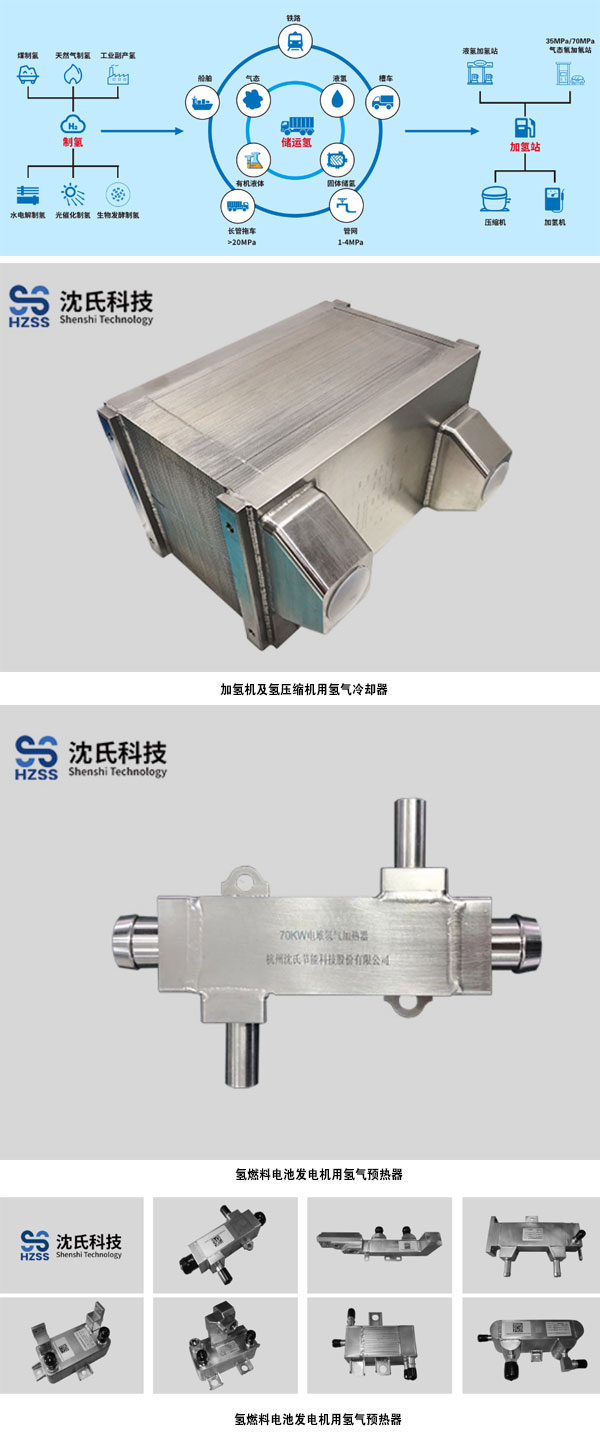 沈氏科技作为低碳热管理解决方案的先行者和引领者,在氢能领域的深耕细作已取得了显著成果。凭借在微通道换热器制造、产品研发设计以及质量管理方面的深厚积累,沈氏科技为全球众多氢能客户提供了高效、安全的定制化解决方案。这些解决方案广泛应用于制氢、储氢、加氢、供氢等关键环节,并在电解水制氢、氢液化、加氢机、氢燃料电池等领域获得了广泛认可。
