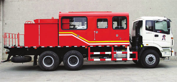 该车具有作业速度快,提升吨位大,传动系数配比合理、使用寿命长,井架安全系数高、安全可靠,控制可靠等特点,是油田有力的增产设备之一。