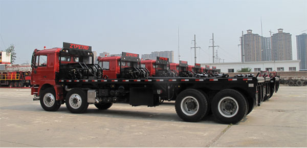 该系列拖车主要用来整体运输钻机现场泥浆泵组、发电机组、气源房、固控系统、油水罐等设备。可以实现设备的整体快速搬迁。